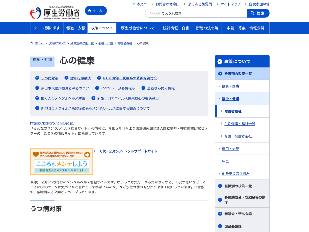 厚生労働省 こころの健康