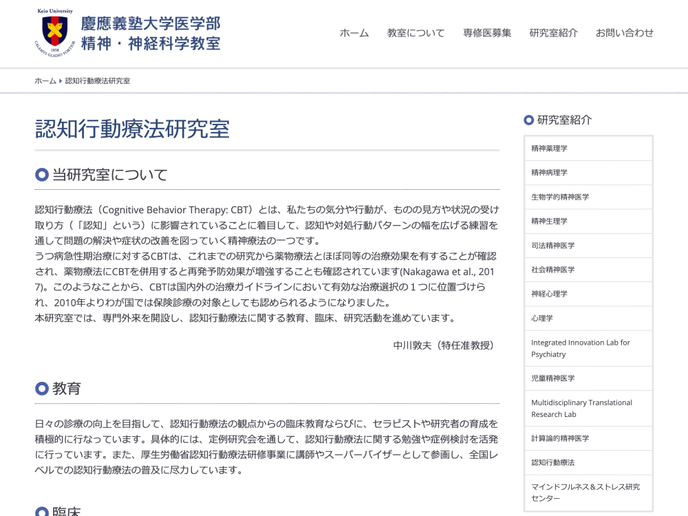 慶應義塾大学医学部精神・神経科学教室認知行動療法研究室